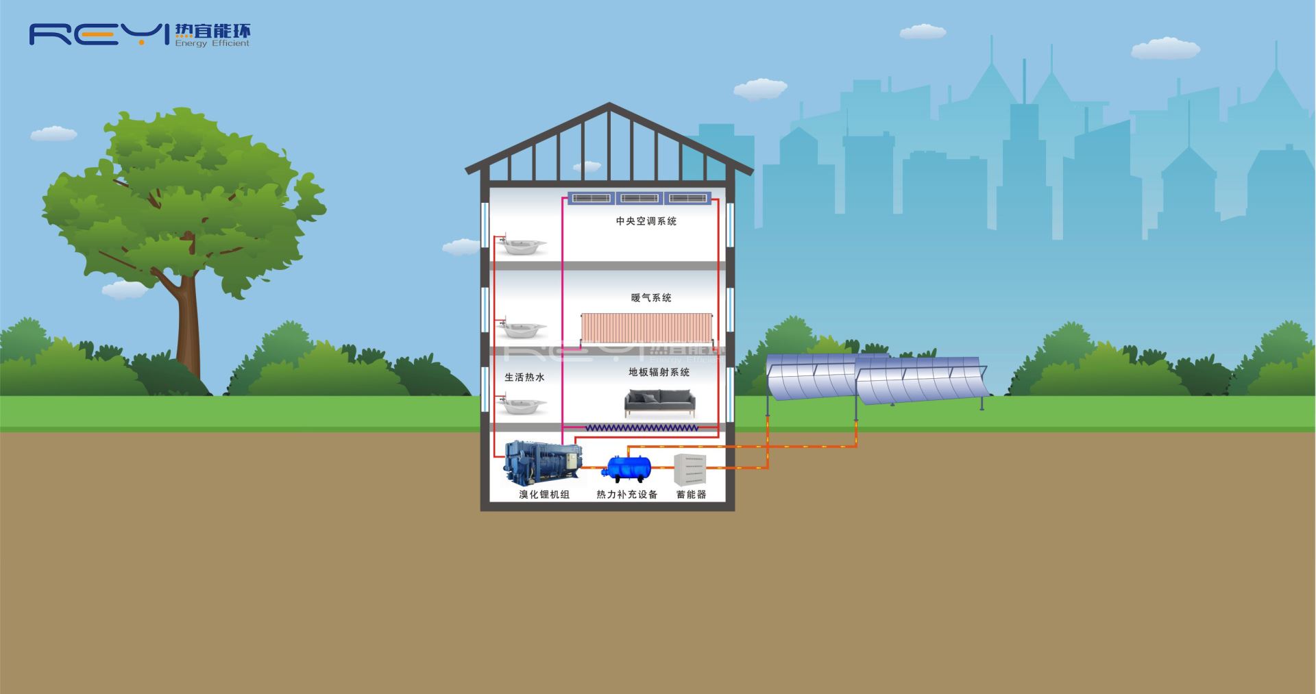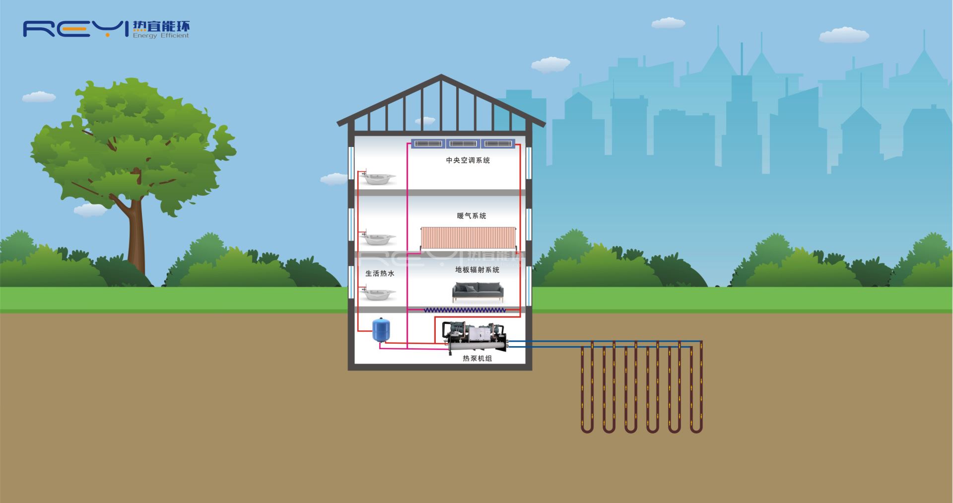 夏季工况:室内余热释放与大自然水体(如江河湖海),实现室内空调制冷。